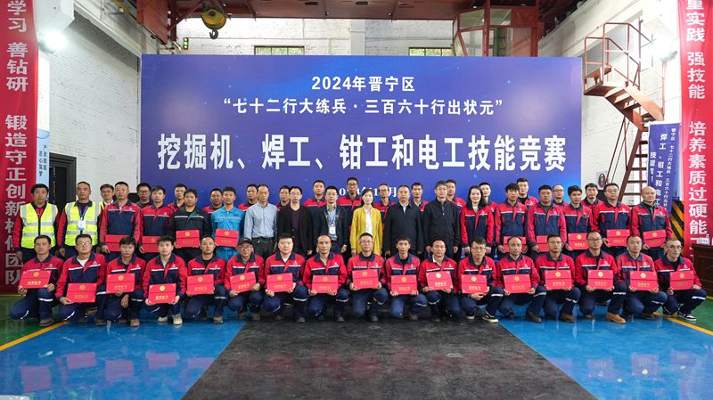 10月10日,晉寧區2024年“七十二行大練兵·三百六十行出狀元”挖掘機、焊工、鉗工、電工技能競賽在公司成功舉辦。晉寧區總工會常務副主席張燕翔,晉寧區人力資源和社會保障局公共就業和人才服務中心主任趙琴,公司黨委書記、工會主席張汝林及相關所屬基層單位黨組織書記出席閉幕式,并為獲獎選手頒獎。